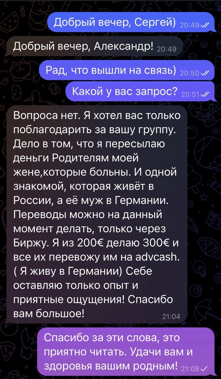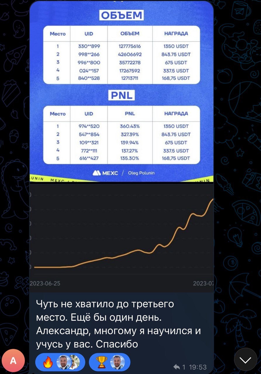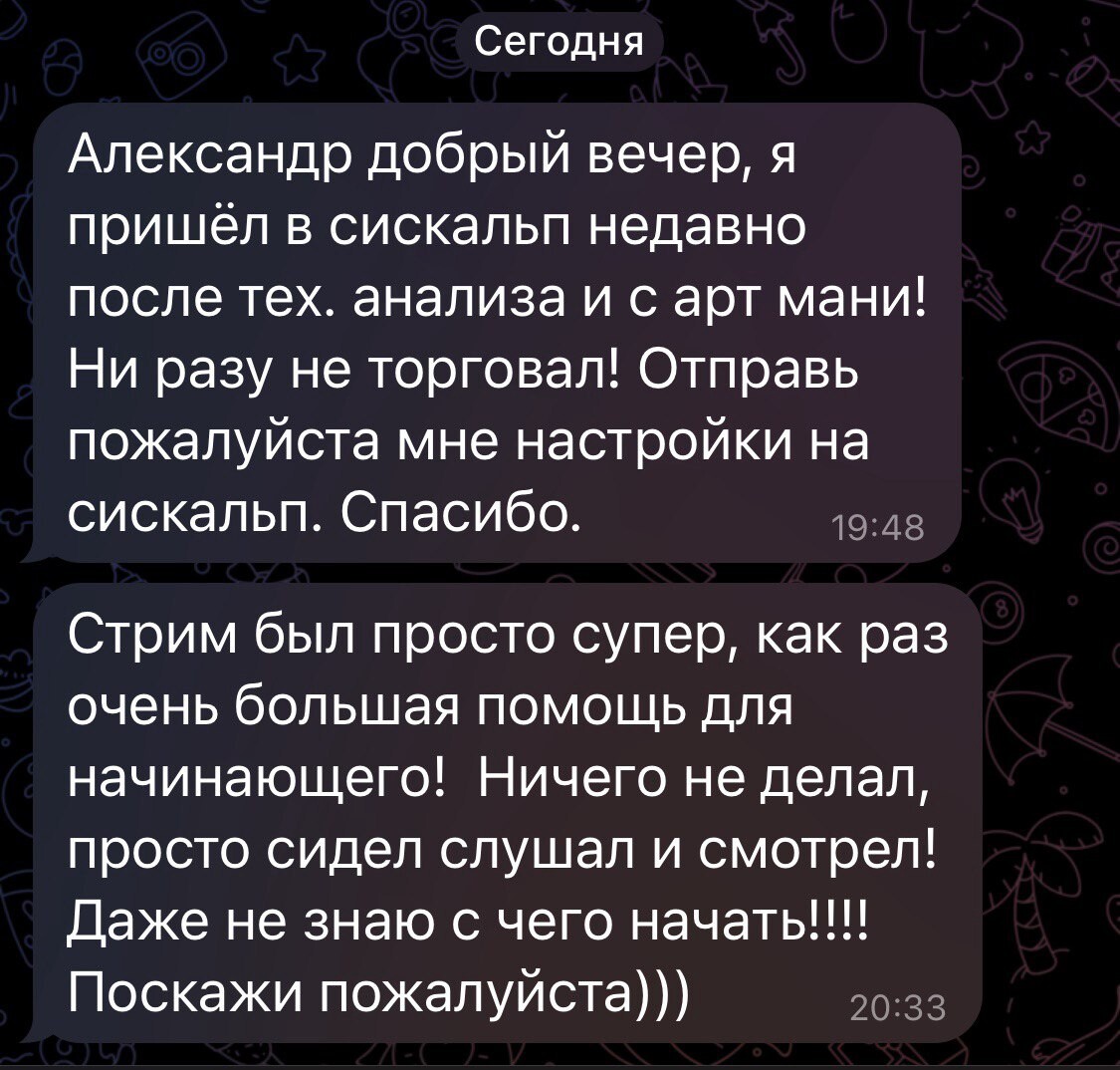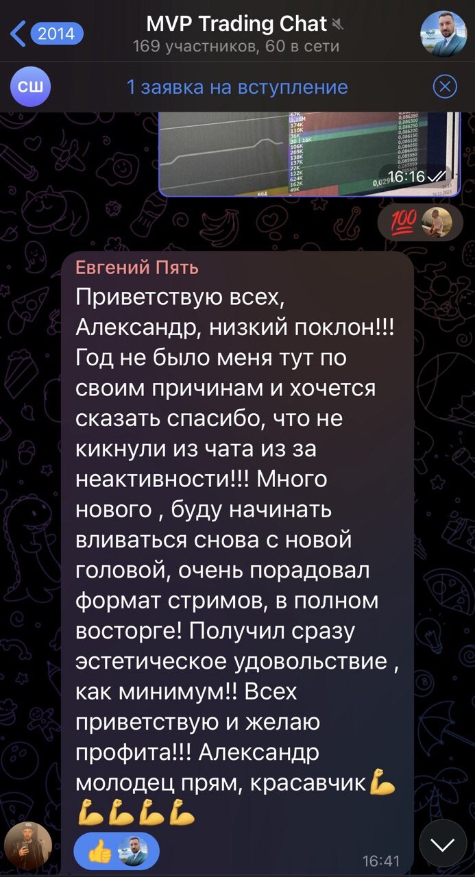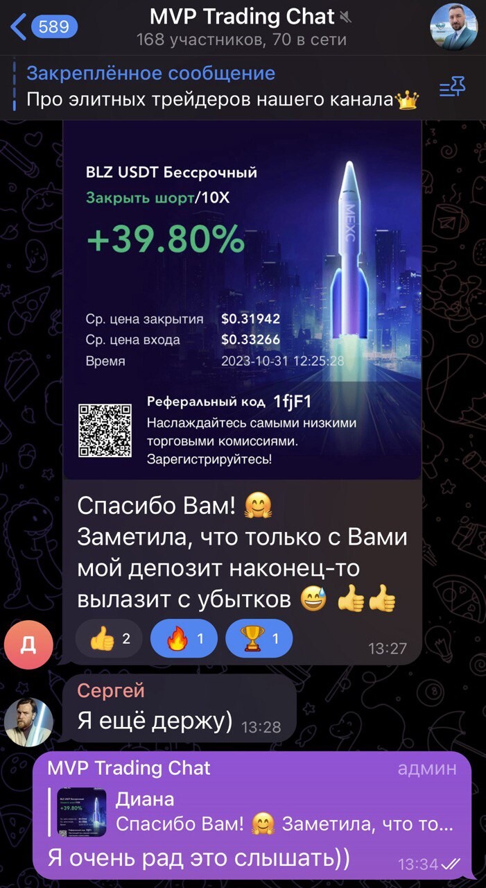 Благодаря торговле в реальном времени и объяснении своих действий подписчики начали лучше понимать рынок и торговать более системно. Тот большой опыт, который я накопил и которым делюсь со всеми помогает избегать грубых ошибок и добиться своих целей в торговле быстрее.