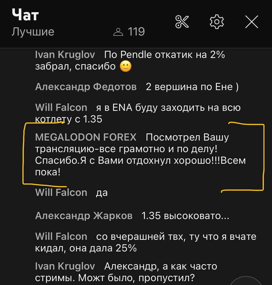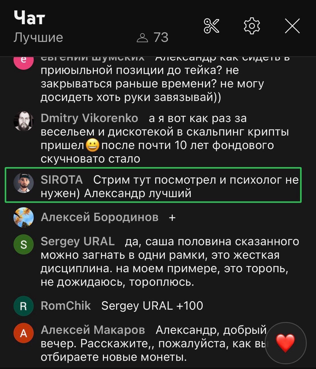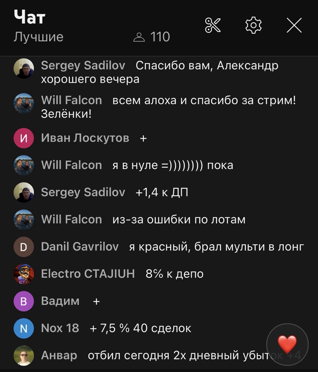 Коллективная торговля с опытными трейдерами обеспечивает мониторинг большого количества сетапов и дает лучшие тайминги входа в сделки. Теплая, информативная и дружелюбная атмосфера не дает скучать и позволяет узнавать что-то новое. Все это проходит на каждом стриме!