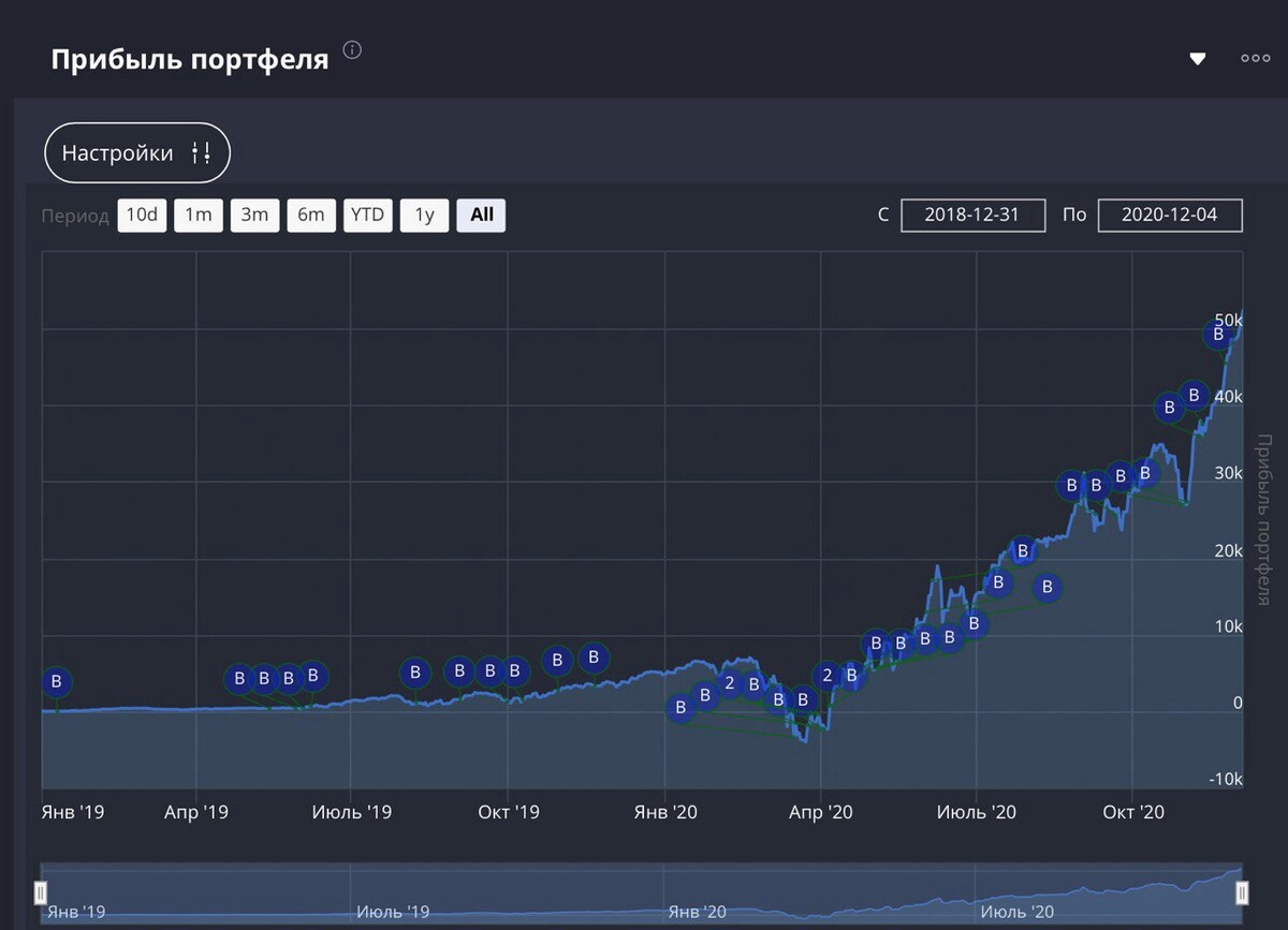 Ниже на скринах мои самые лучшие сделки начиная с 2019 года. На тот момент я управлял клиентскими активами в швейцарском банке Swissquote Bank на валютном рынке и вел портфели на фондовом рынке в EXANTE. После ввода санкций банк перестал работать со счетами граждан РФ и пришлось полностью переходить на формат инвестиционного портфеля в 2020 году. После обрушения рынка ковидом словил лучший тайминг набора позиций. На скринах клиентский портфель с результатами за полтора года в EXANTE, но и до этой платформы санкции добрались. Летом 2021 года я полностью перешел на торговлю фьючерсами на криптобиржах.